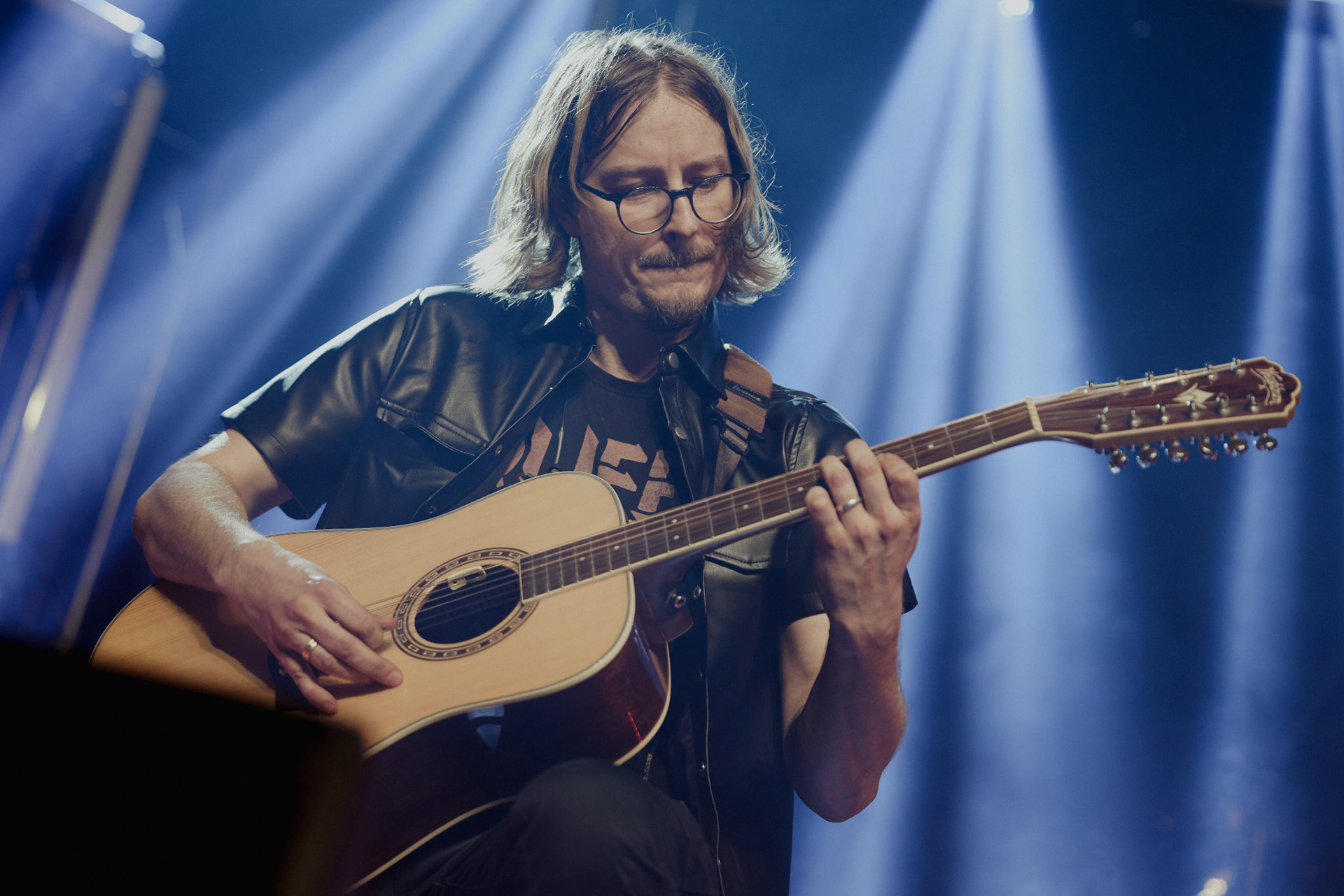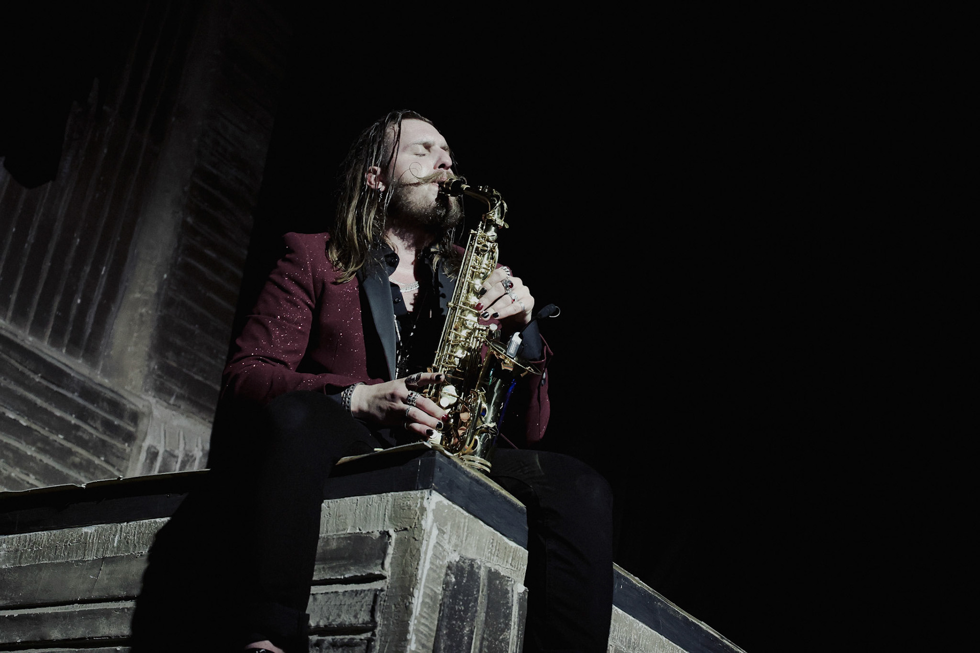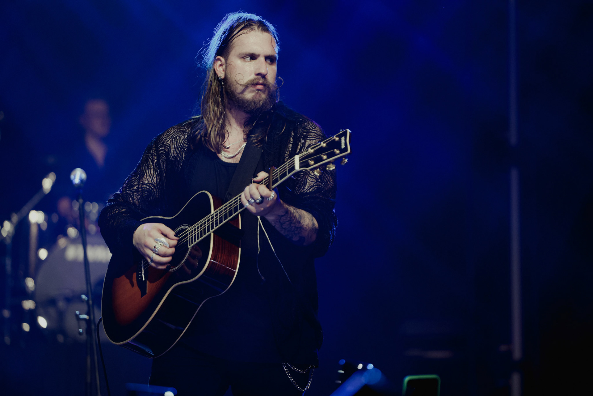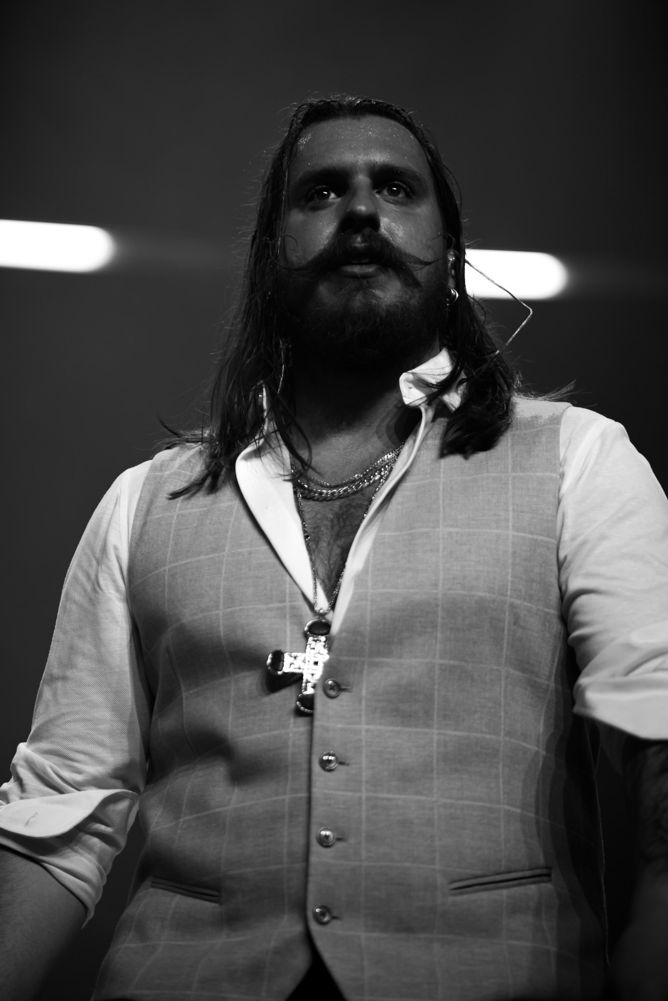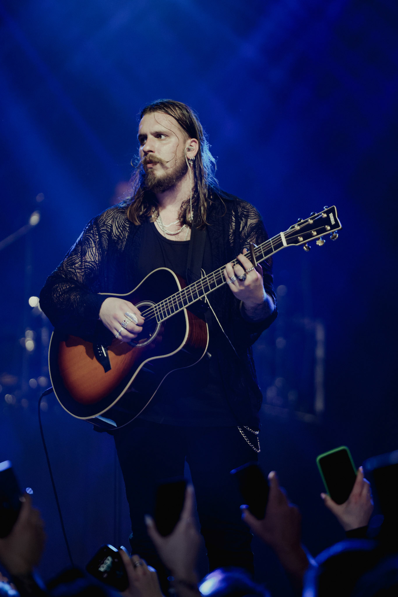 Concert photography from Miks Galvanovskis performance at Palladium Riga, capturing his emotional delivery, dynamic stage presence, and the intimate connection with the audience.