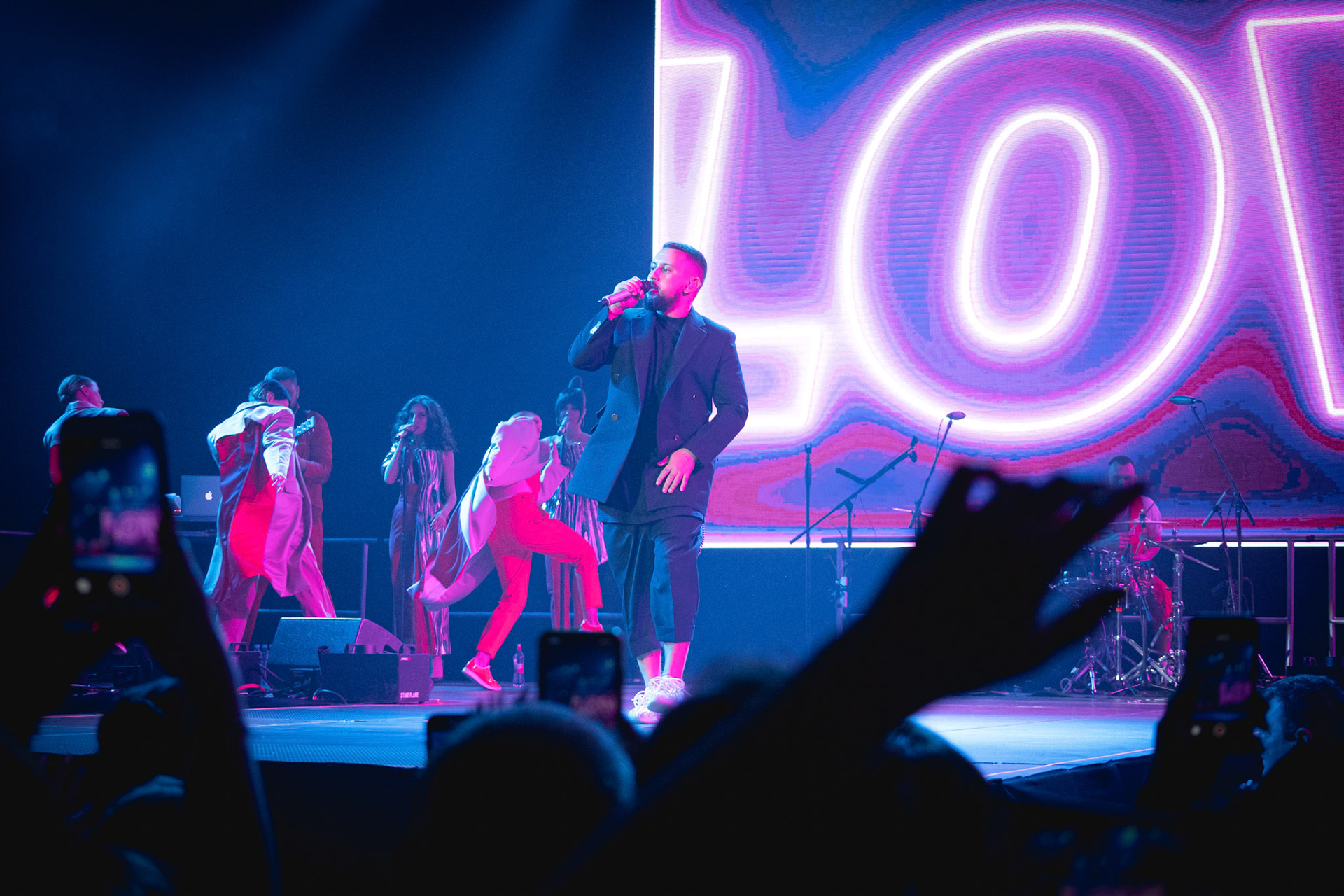 Concert photography from Monatik performance at Arēna Rīga, capturing his vibrant choreography, high-energy pop sound, and the colorful, dynamic atmosphere of the show.